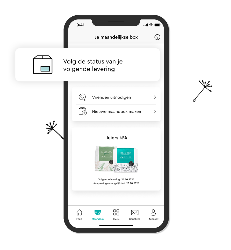 Meer tijd voor dat wat belangrijk isBeheer in de LILLYDOO app altijd en overal je luierbox en bezorgmomenten – wij regelen de rest.